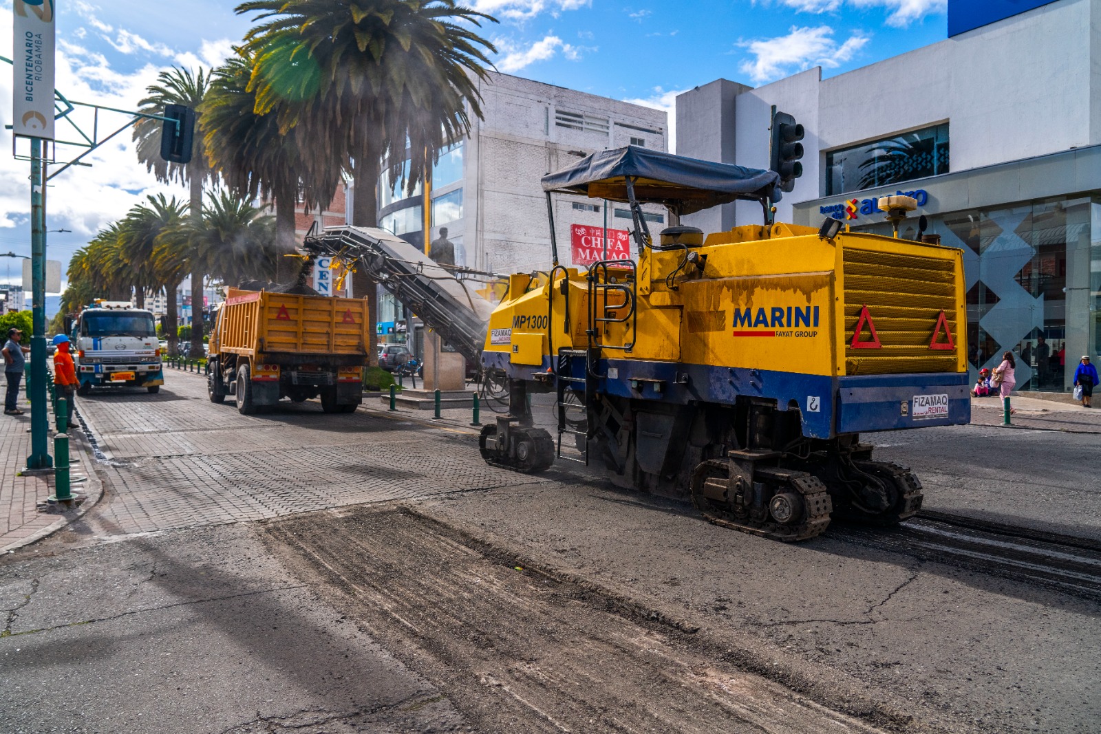 Al momento se realiza el levantamiento de la carpeta asfáltica en el sector del parque central para la construcción de la plataforma, de igual manera en las calles adyacentes se corta el pavimento para el ensanchamiento de las aceras, la conformación del ancho de vía definitiva y la cimentación de nuevos bordillos.